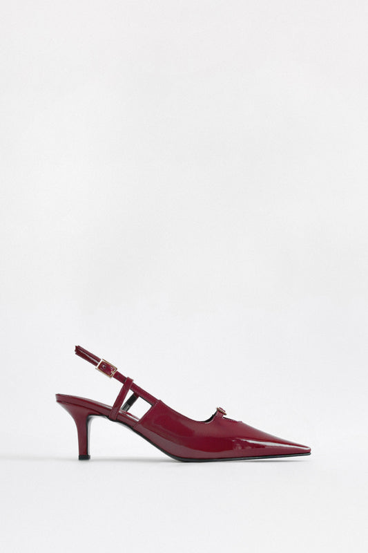 POINTED TOE SINGLE BAND BURGUNDY PATENT LEATHER WOMEN'S HEELS