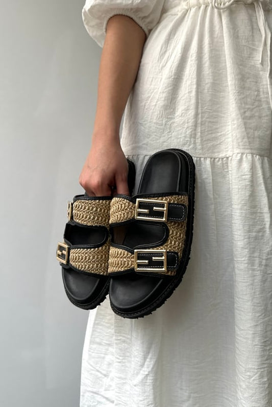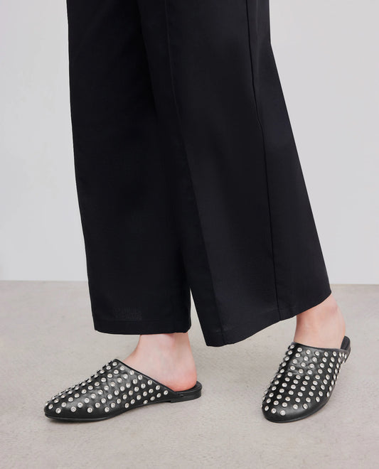 Vintage Half-Sandal Mules with Thick Sole, Rivets, and Flat Heel