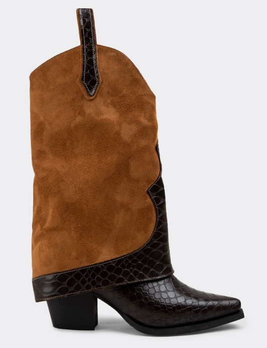 CAMEL SUEDE WOMEN'S BOOTS WITH BLUT TOE ANKLE DETAILS