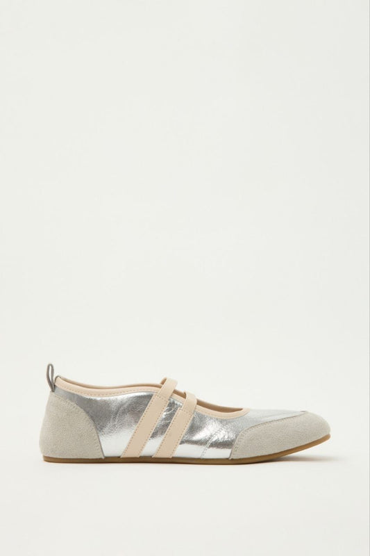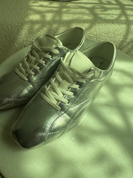 Silver Metallic Oxford Shoes with Brown Leather Laces