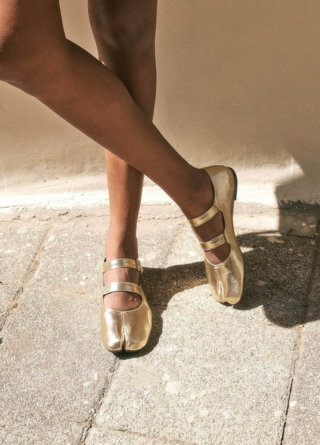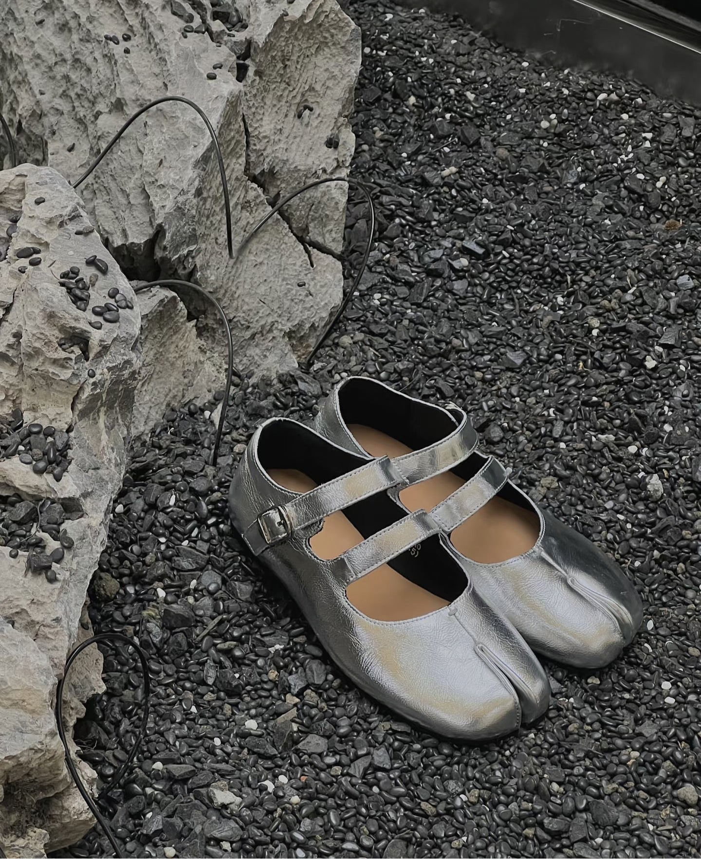 Silver Tabi Ballerina Shoes - Split Toe Mary Jane Flats